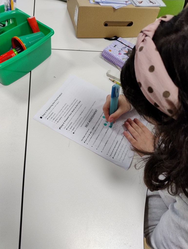 After the presentation, they completed a short reflection to evaluate their own work and effort.