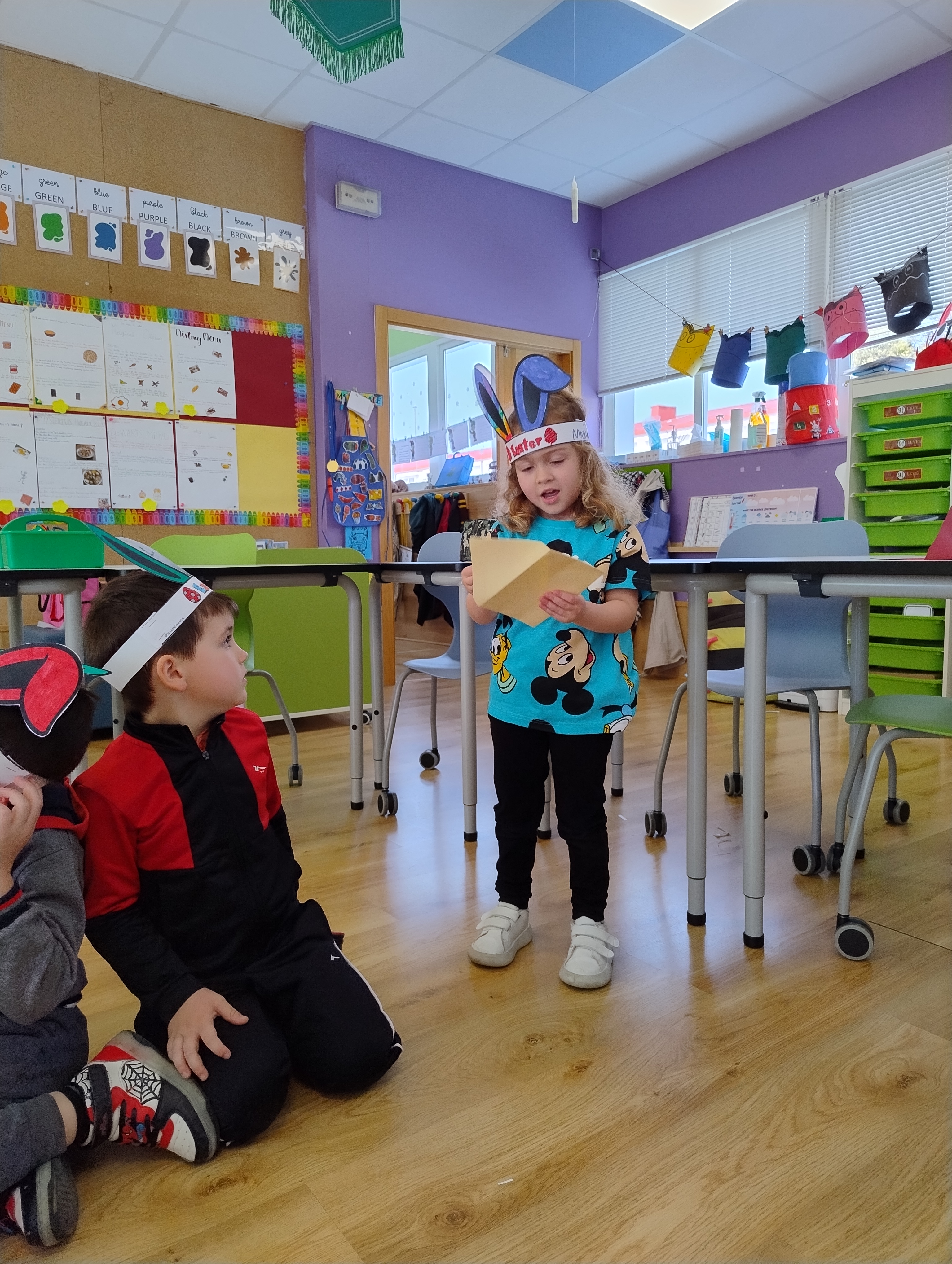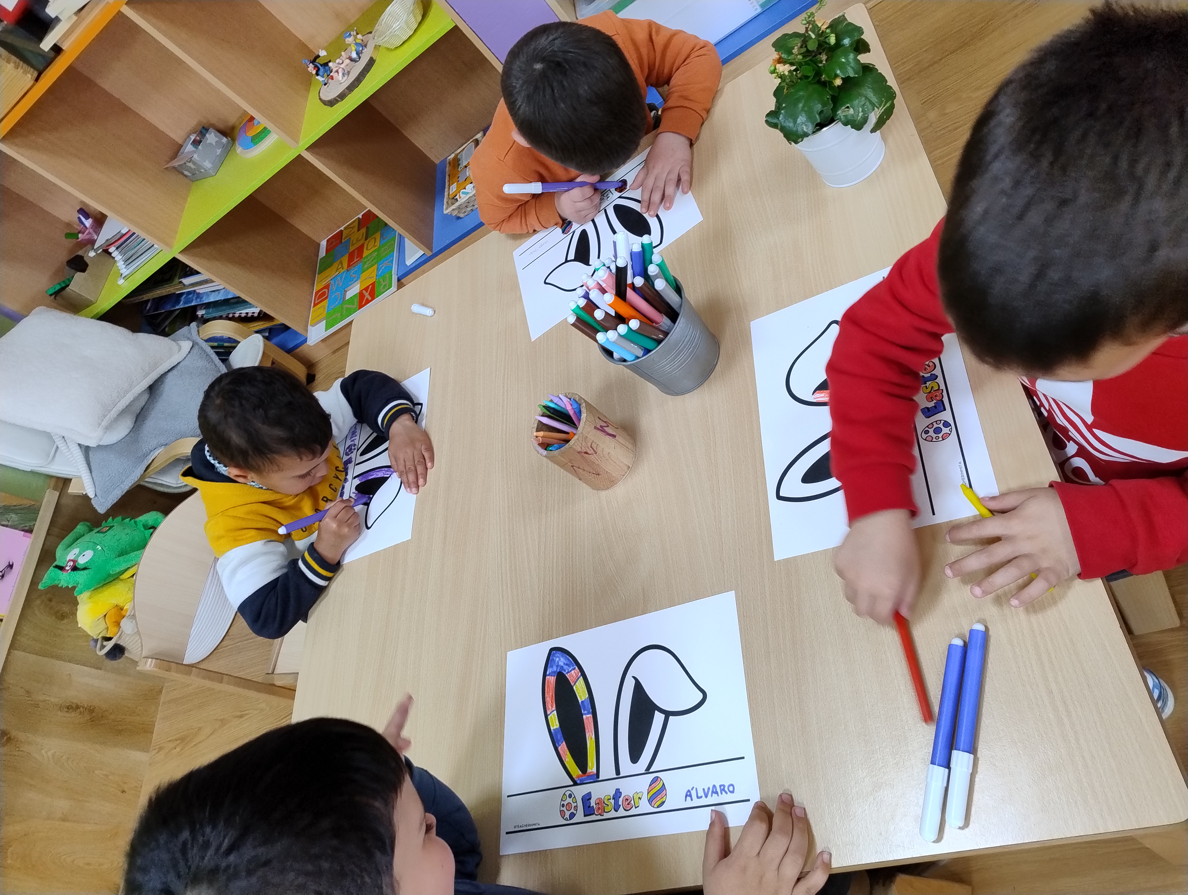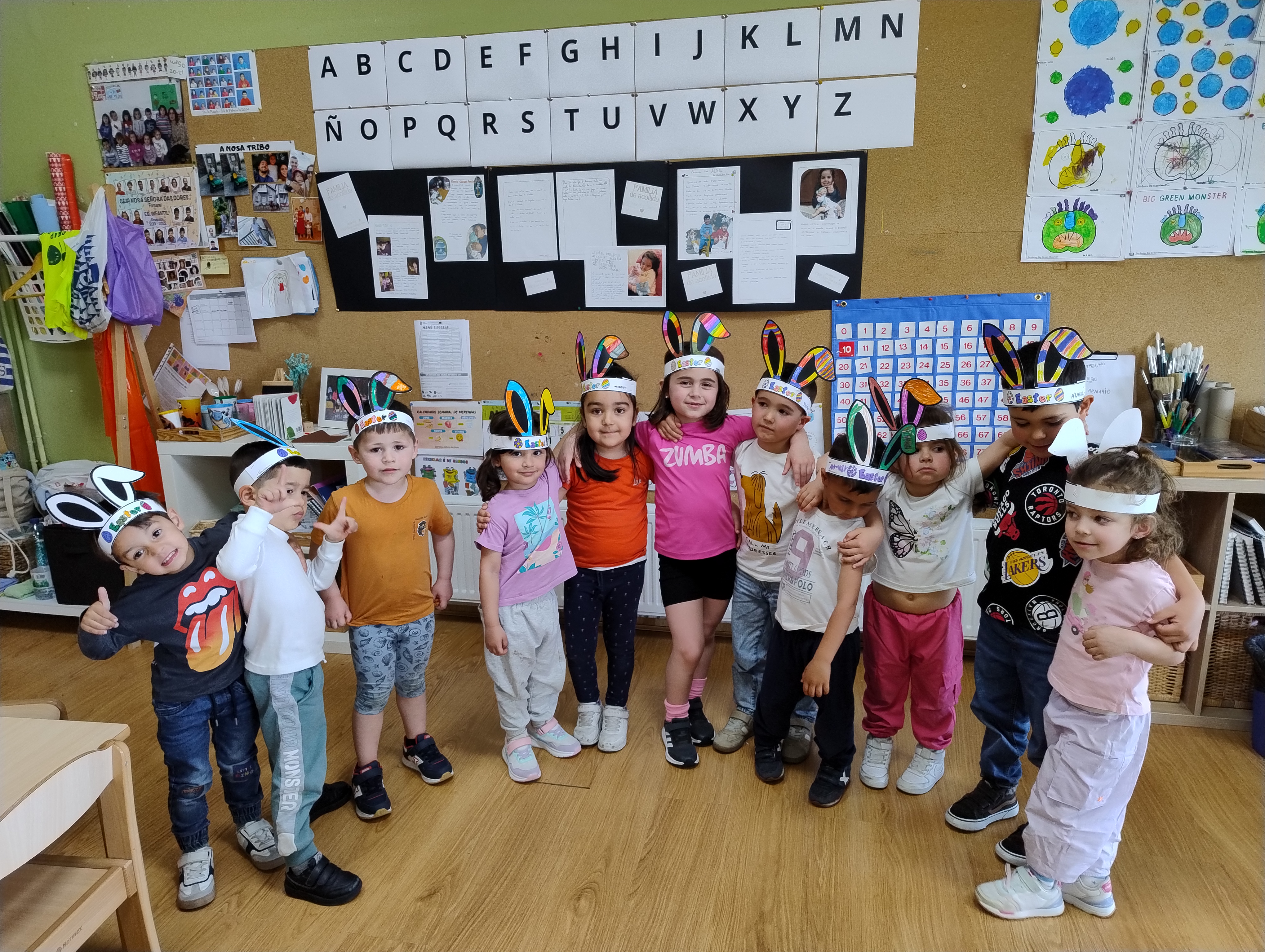 As coroas coas orellas de coello e as cestiñas de papel sacámolas da web Aula en Juego, un recurso moi útil para profesorado creativo. Ambientamos a clase con música, lanternas e ovos de chocolate para crear unha experiencia chea de maxia.