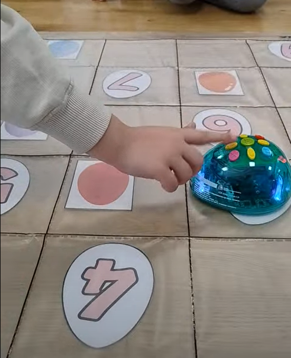 Each group received a secret mission, like “Find the yellow egg” or “Go to number six”. They had to program the Bee-Bot to move to the correct square. If they made a mistake, they worked together to fix it and try again.