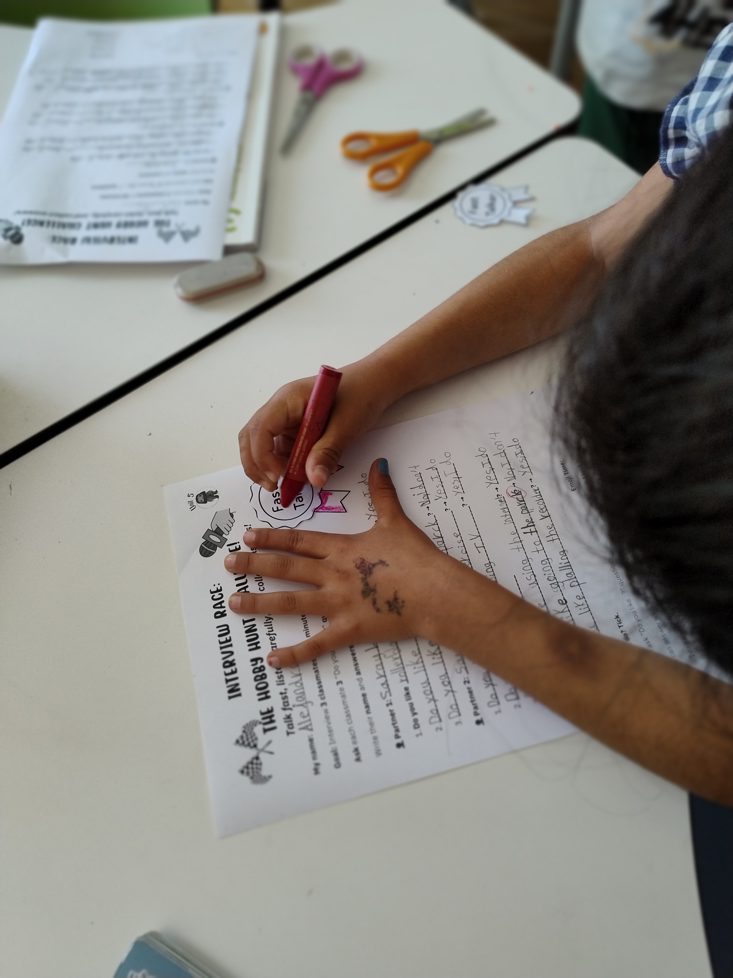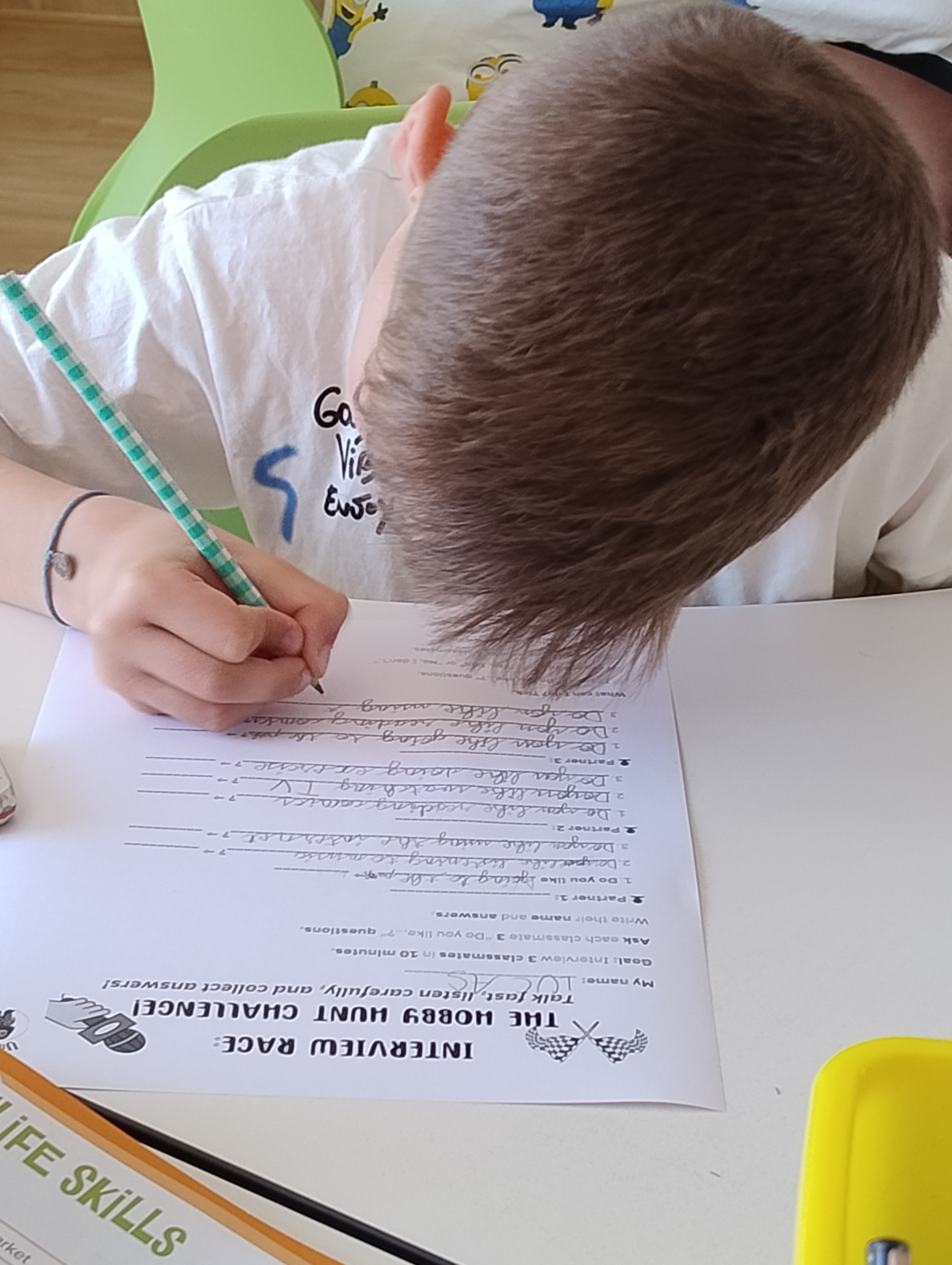 Our students became real reporters, asking questions and learning about their classmates’ hobbies.