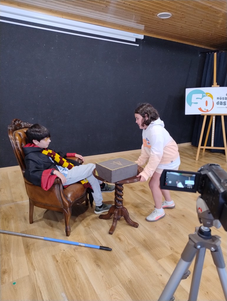 Our 4th-grade students joined a magical adventure in Diagon Alley. Grimbald, a goblin from Gringotts Bank, asked them to help find missing magical items in wizard shops. To do this, they had to use English to ask questions, write dialogues, and act like real wizards and witches.