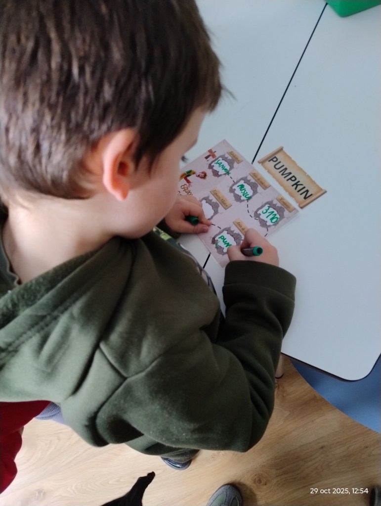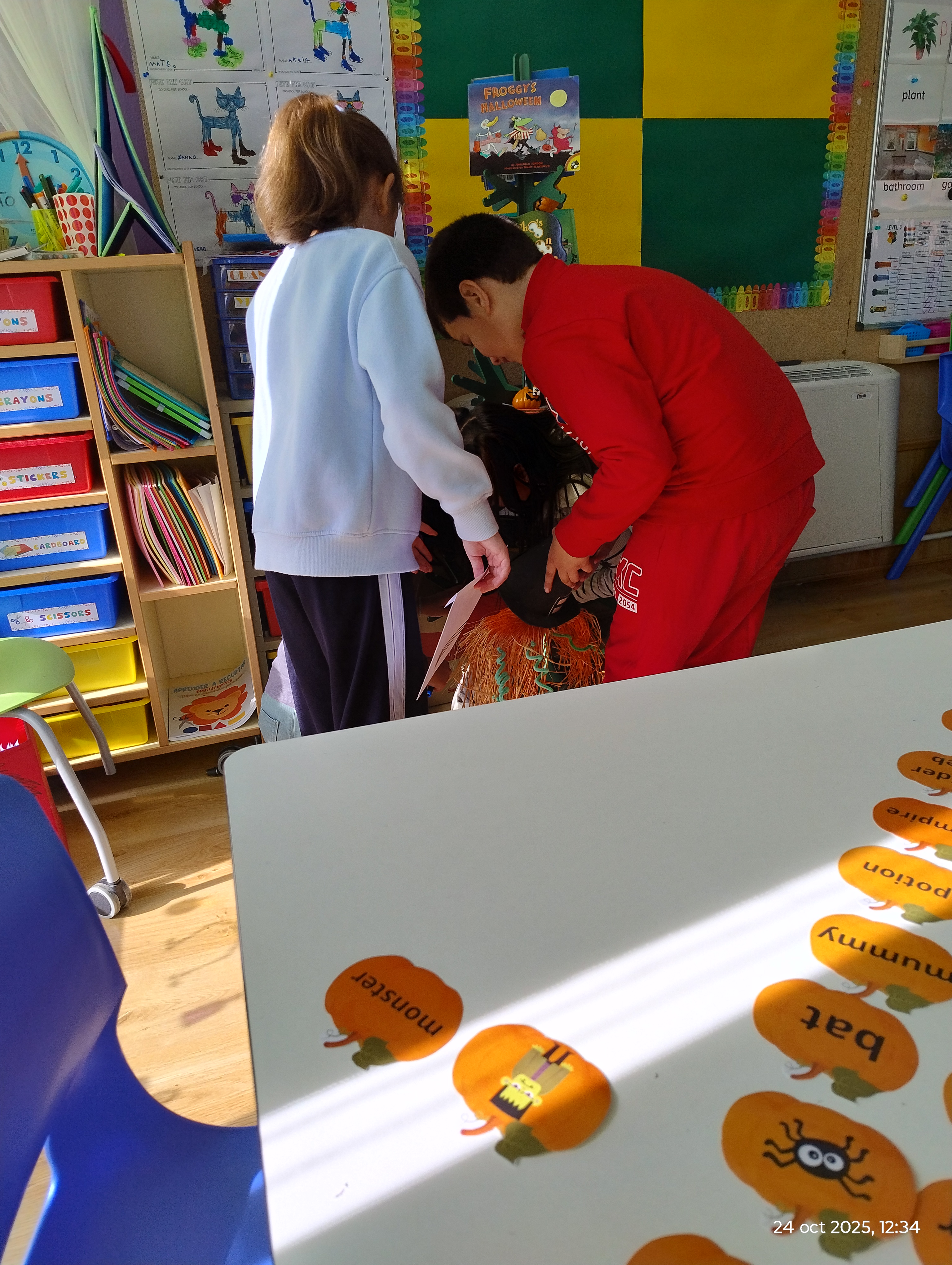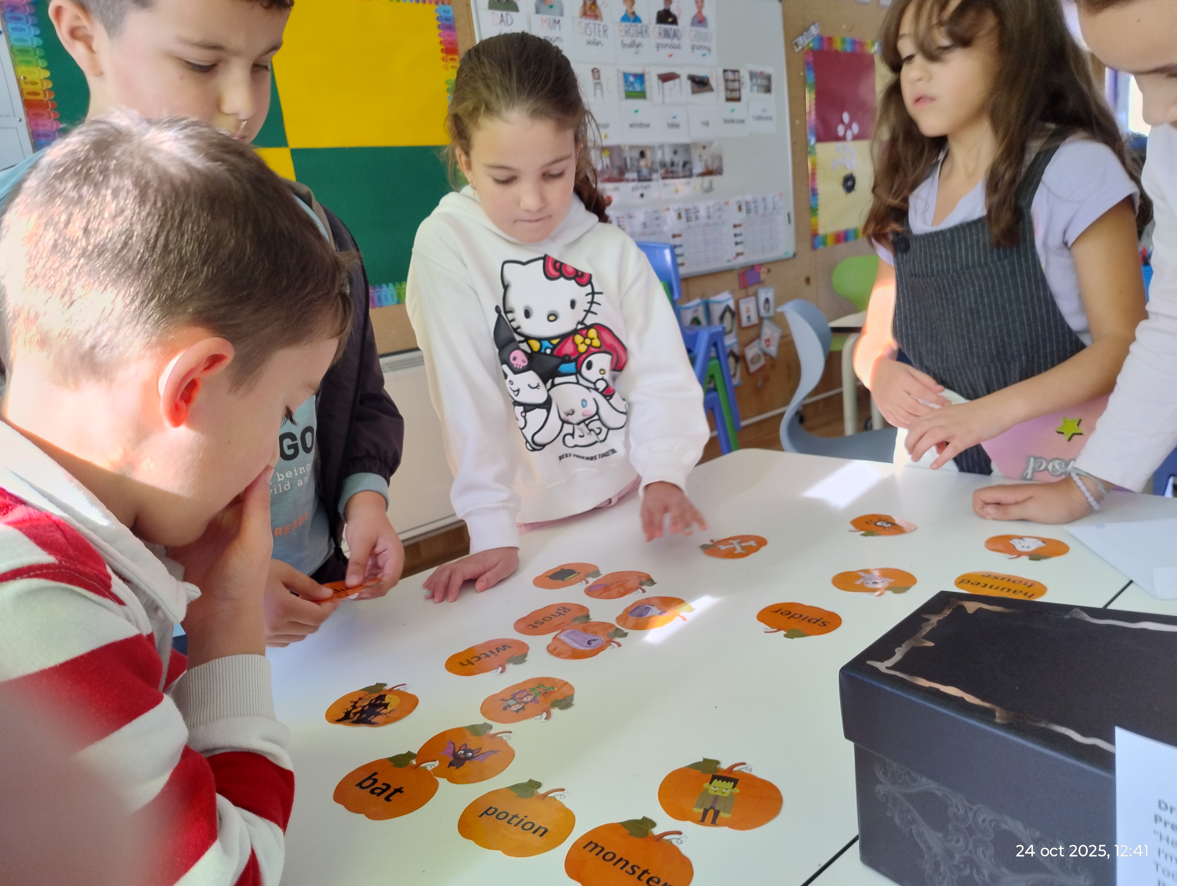 - The older students had to match mixed-up pumpkins — some with pictures and others with words — to practise Halloween vocabulary.