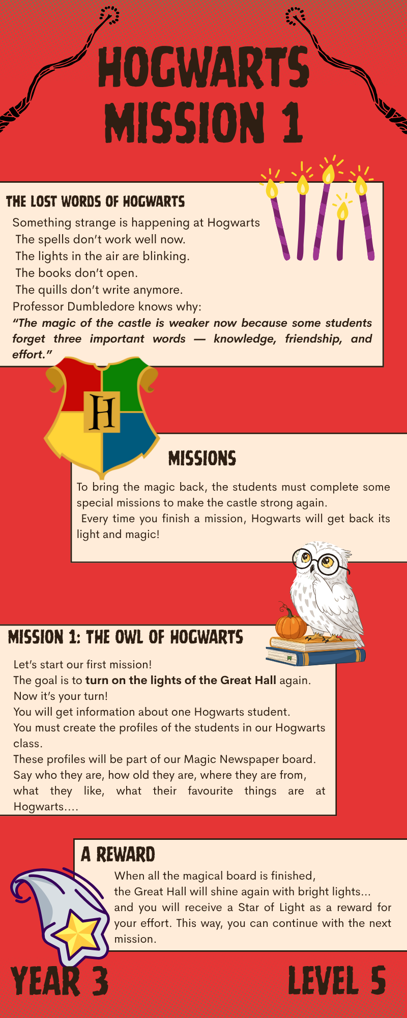 In the first one, The Owl of Hogwarts, students must write and present magical profiles of their classmates.