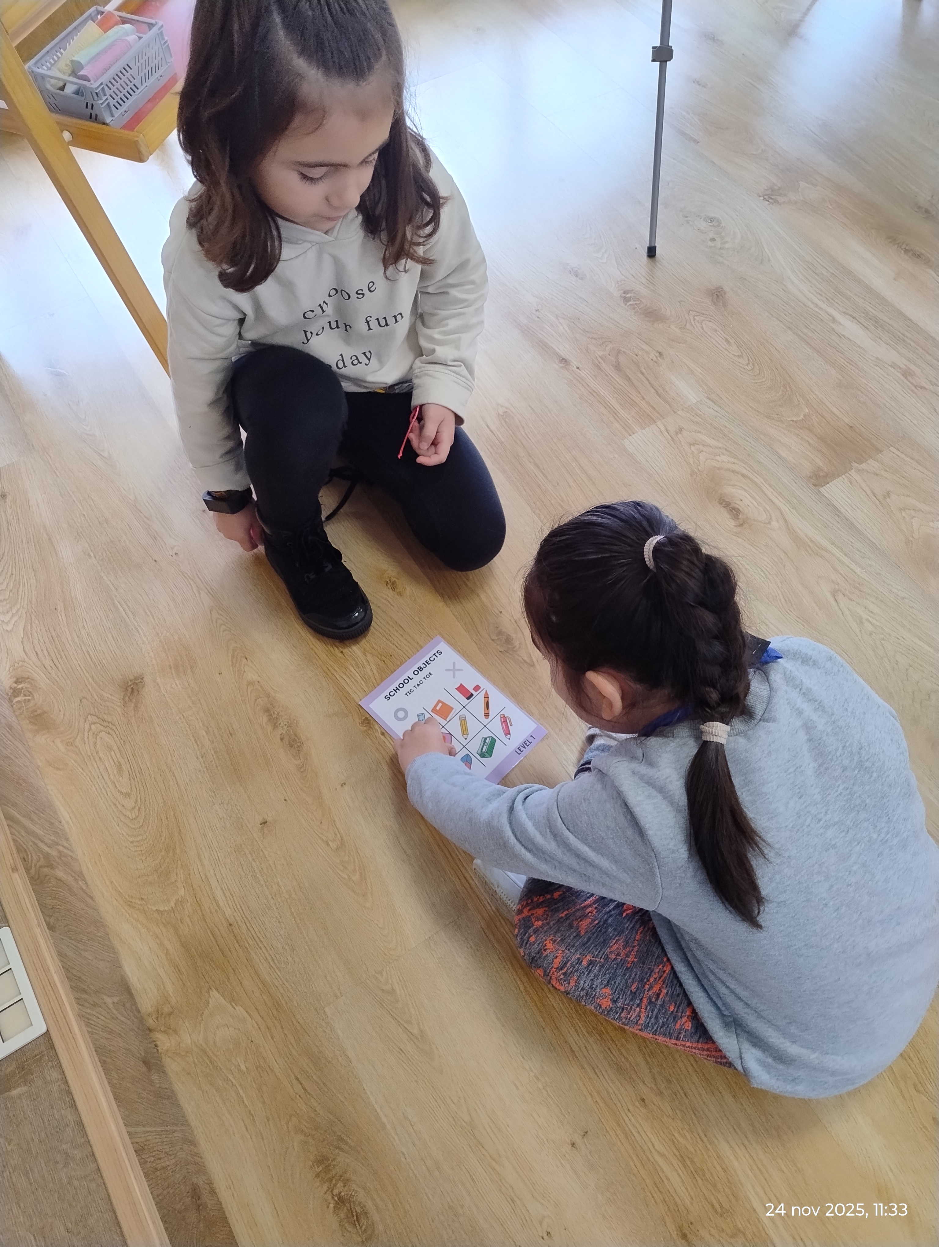 Para colocar a súa ficha, tiñan que ler ou identificar a palabra e dicir unha frase curta: I’ve got a pencil!.
