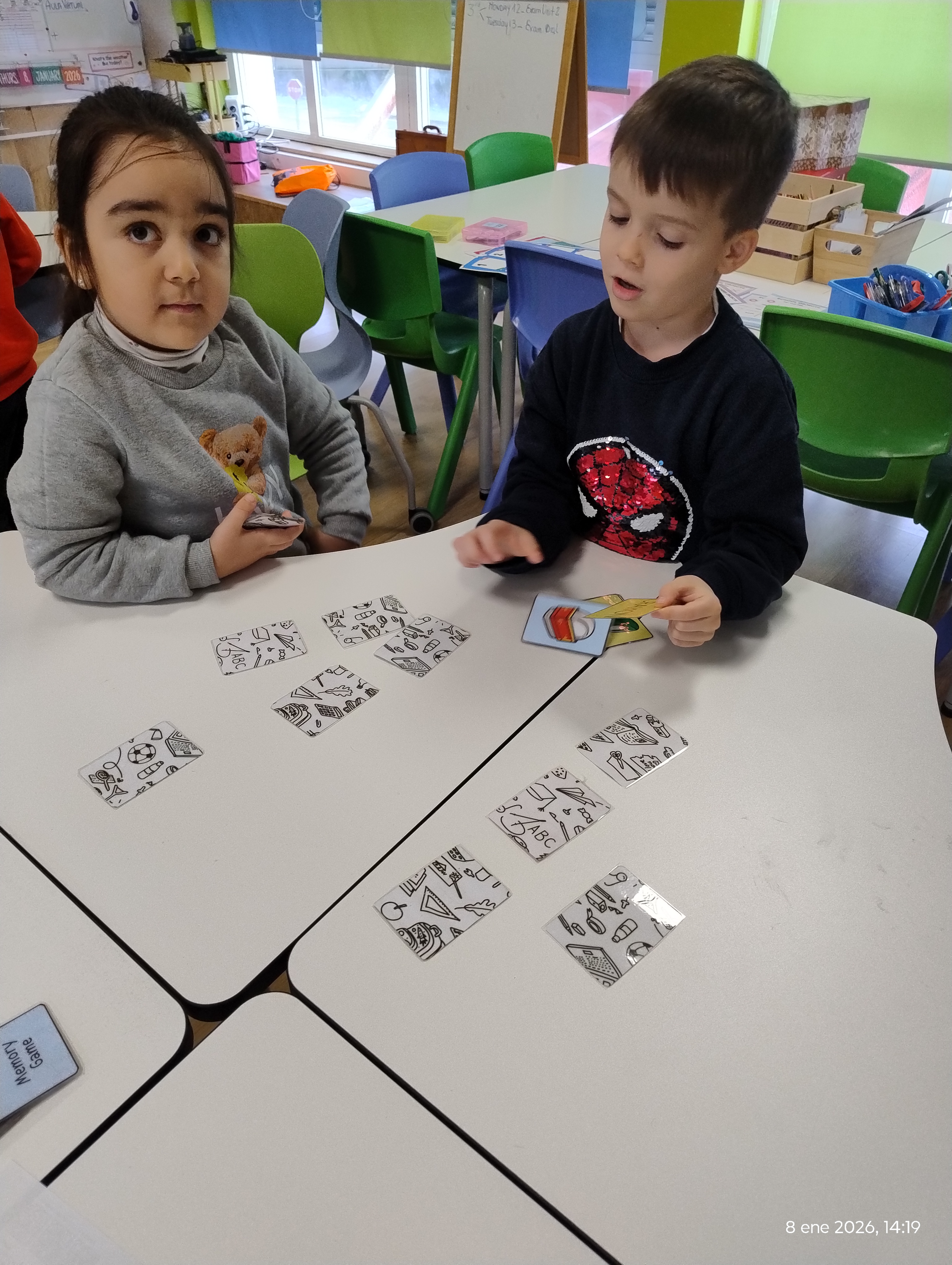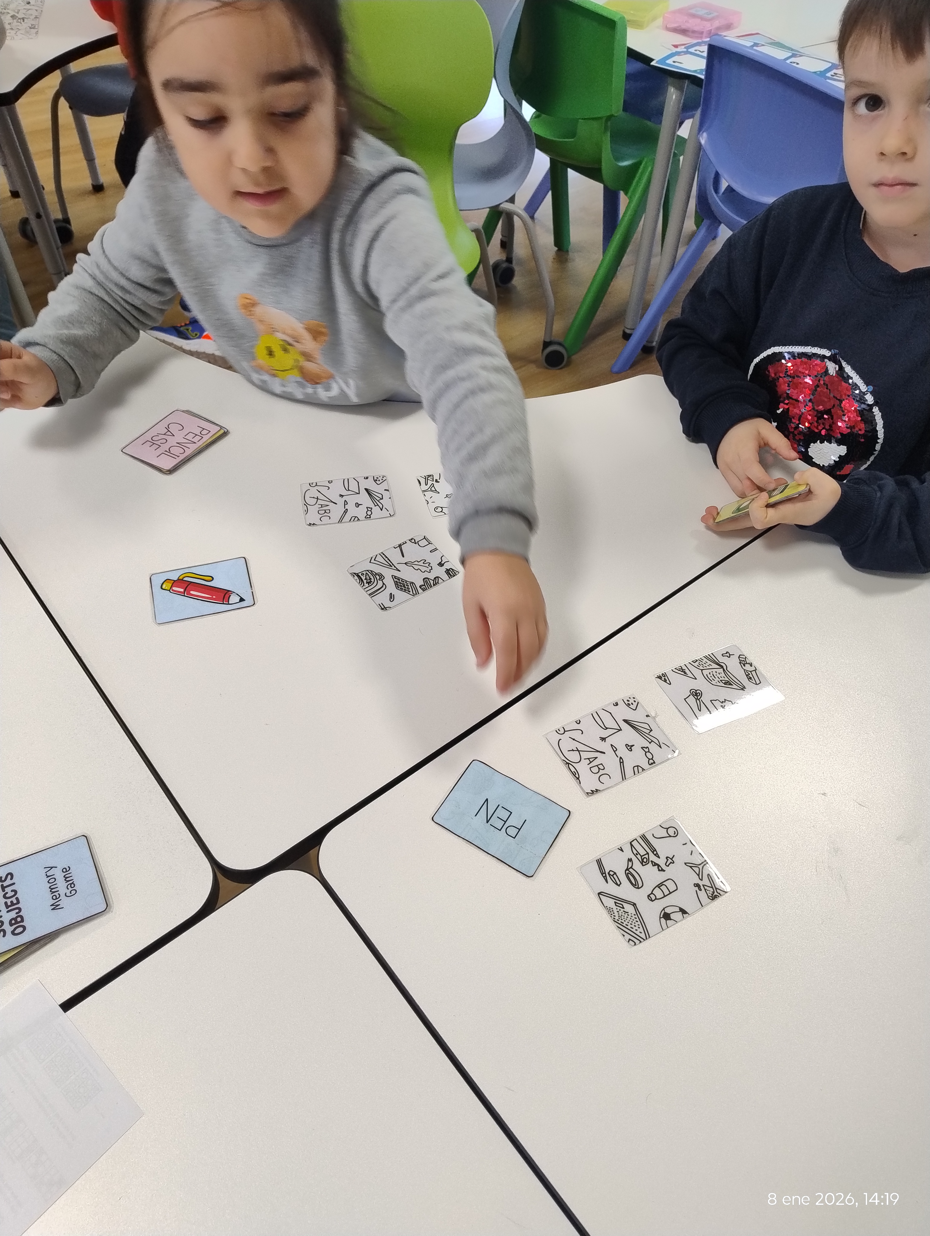 Children found pairs while naming the objects out loud, improving memory and pronunciation.