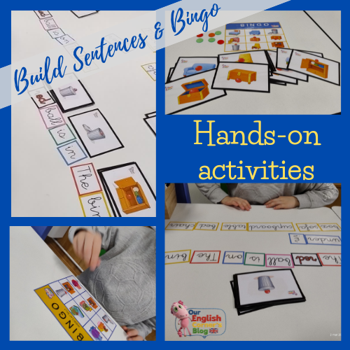 They had to listen carefully, understand the full sentence, and identify the correct picture on their bingo card. This helped them practise understanding full sentences, not just isolated words. It also reinforced prepositions of place (in, on, under) and furniture vocabulary in a natural context.