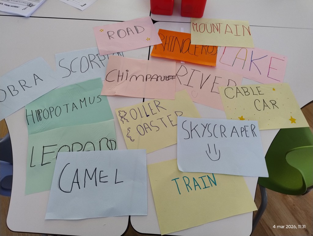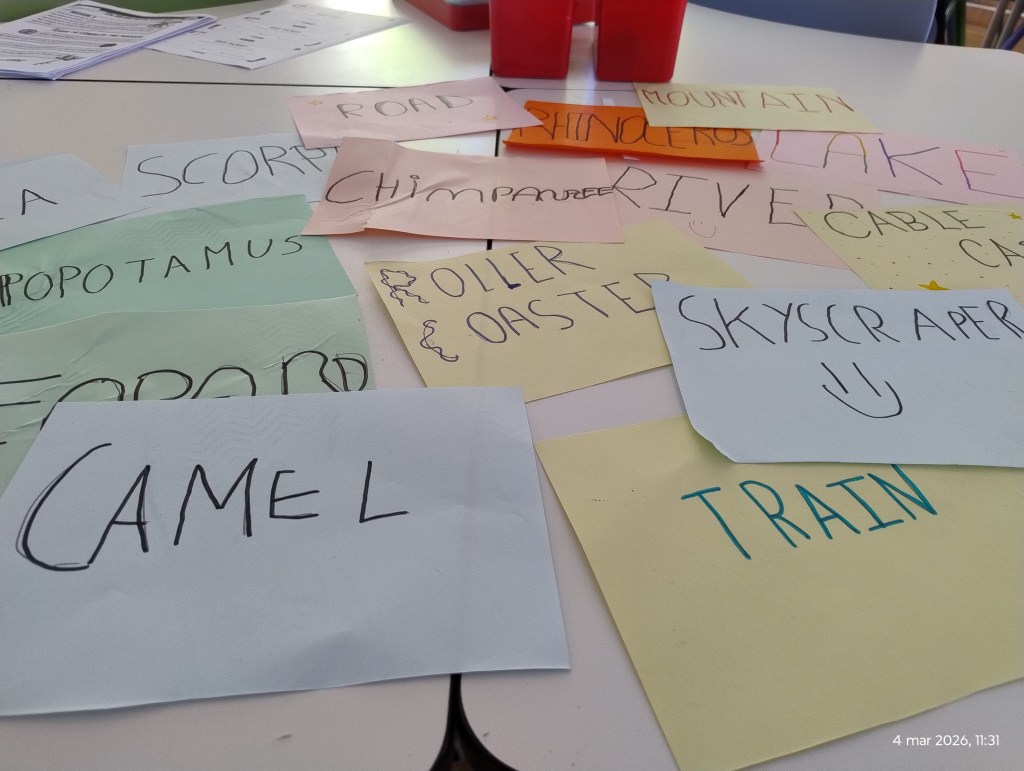 Na clase de inglés, practicamos o vocabulario con dous xogos, e o alumnado fixo as súas propias tarxetas, facendo a actividade máis significativa.