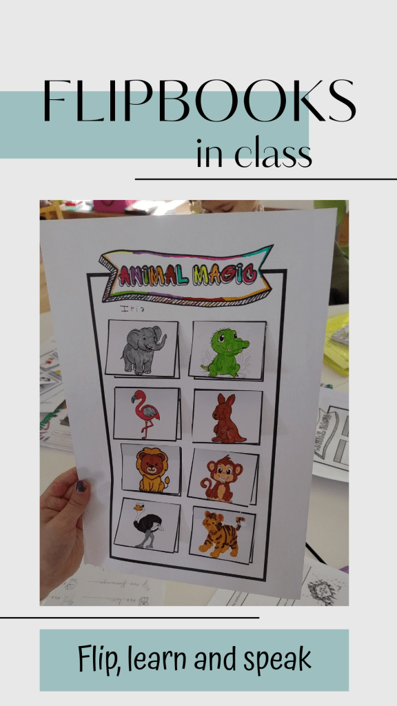 In 3rd and 4th year of Primary, we use them with topics such as Animals and Shops. In 6th year of Primary, the flip book topic was Environmental Features. They work very well because they are visual, practical and motivating.