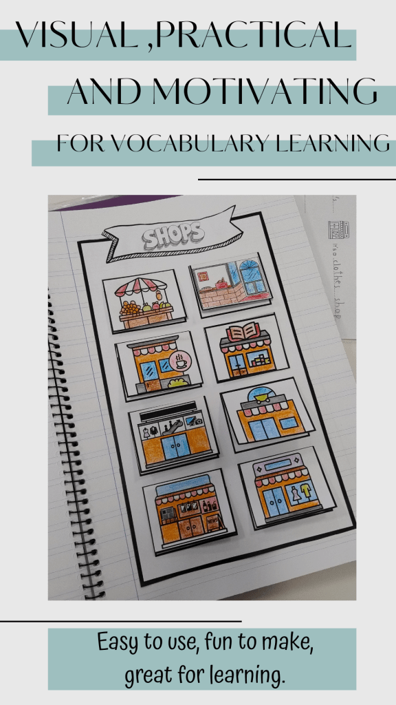 In our English lessons, we try to learn new words in a fun, active and meaningful way. One of the resources we use in class is the vocabulary flip book.