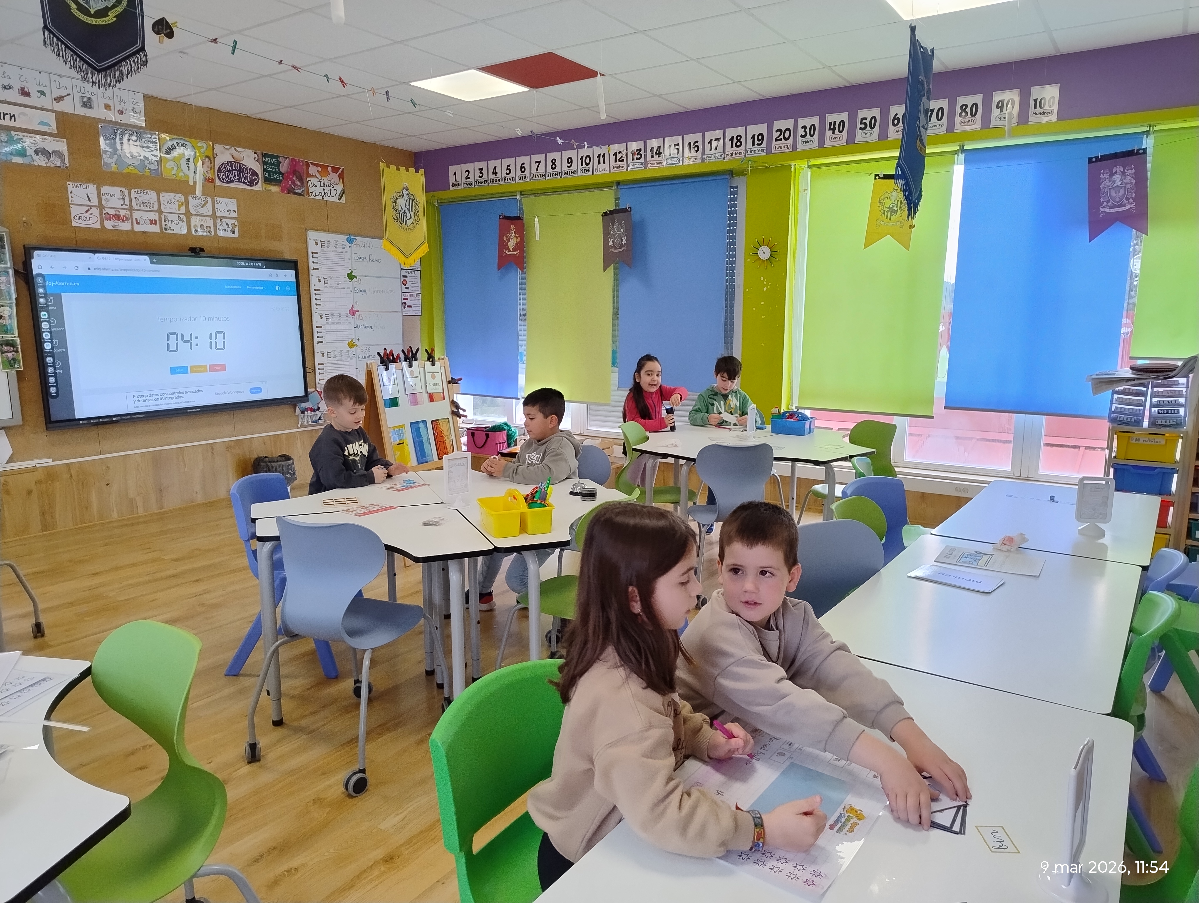 Hoxe rematamos a nosa unidade de inglés dun xeito moi especial: transformamos a aula nunha zona de acción con 4 estacións de aprendizaxe. O obxectivo era poñer en práctica todo o aprendido sobre as preposicións (in, on, under), o mobiliario e os animais.