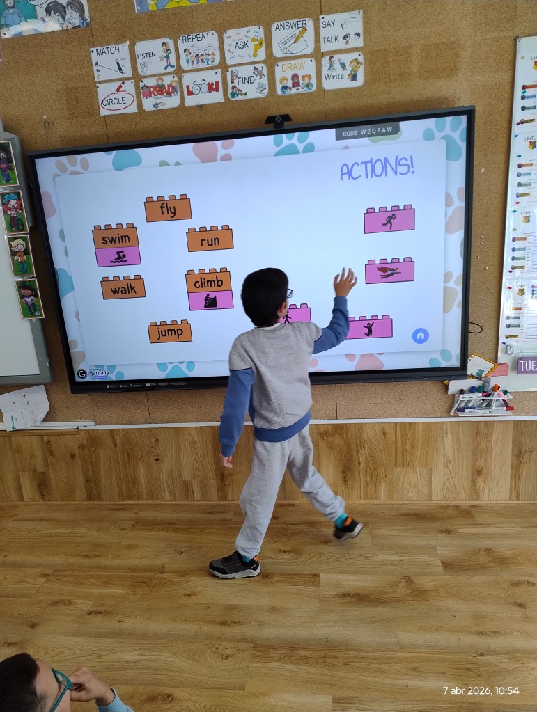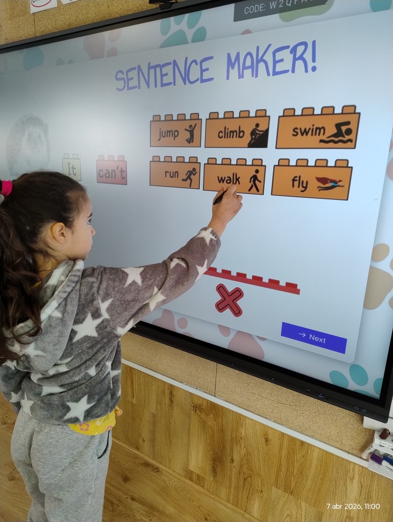 We used a Genially digital resource that allowed the children to look at different animals and create simple sentences in English, such as: “It can fly”, “It can swim” or “It can’t jump.”