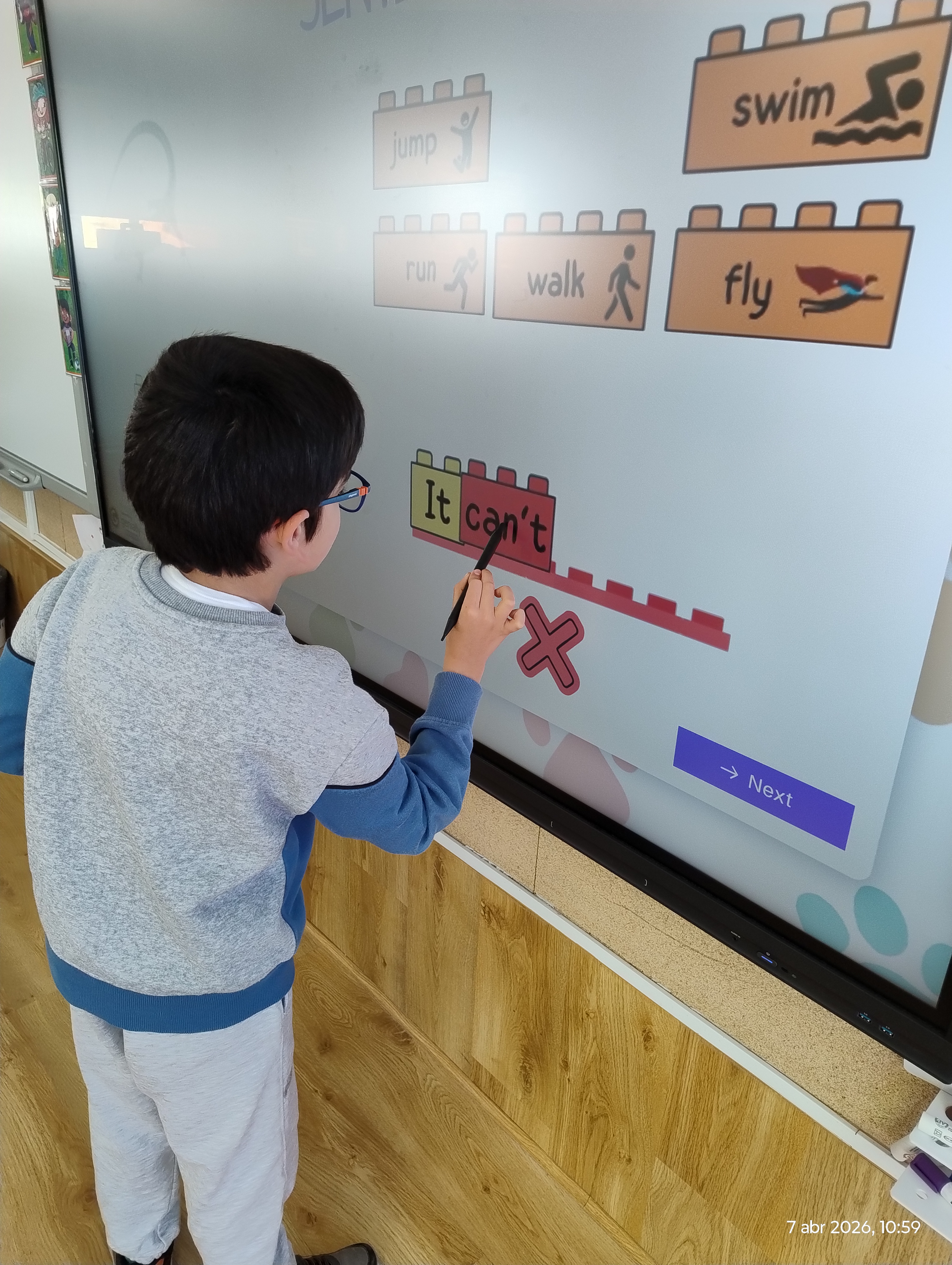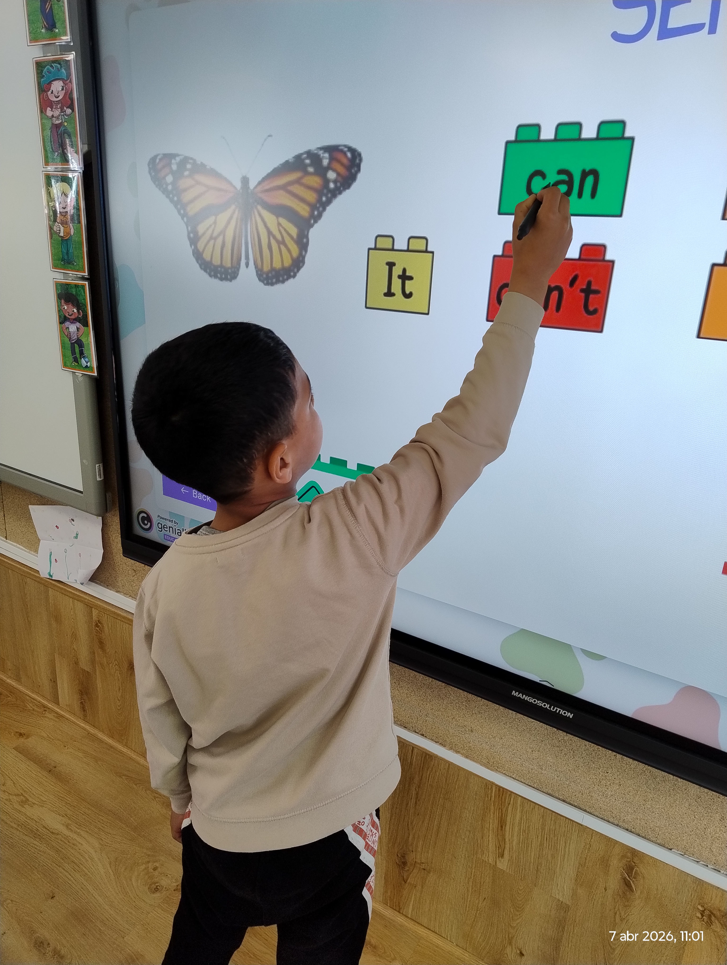 We used a Genially digital resource that allowed the children to look at different animals and create simple sentences in English, such as: “It can fly”, “It can swim” or “It can’t jump.”