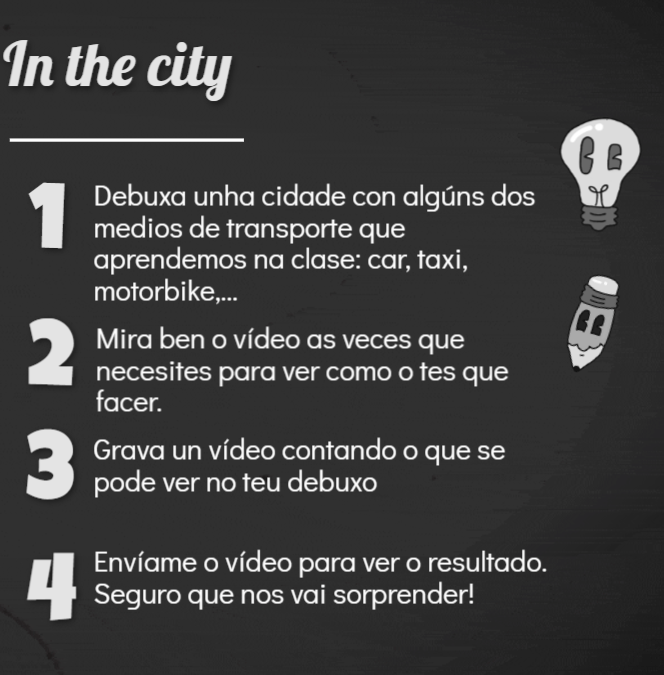 Copiade e debuxade o vocabulario novo na libreta. Gravade un vídeo ensinando o e nomeando as palabras novas