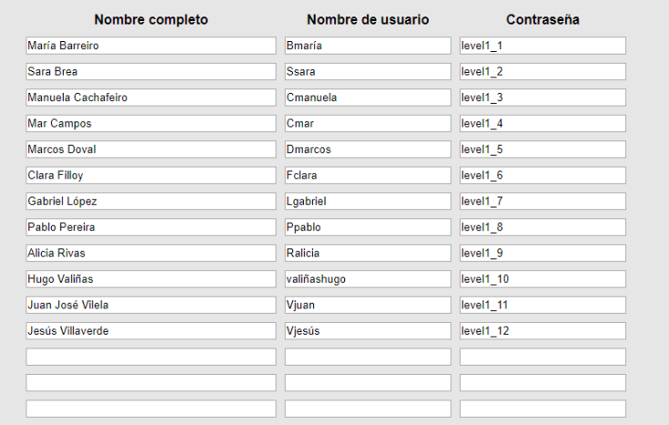 Para acceder ao recurso, tendes que por o voso usuario e contraseña. Mirade no seguinte cadro: