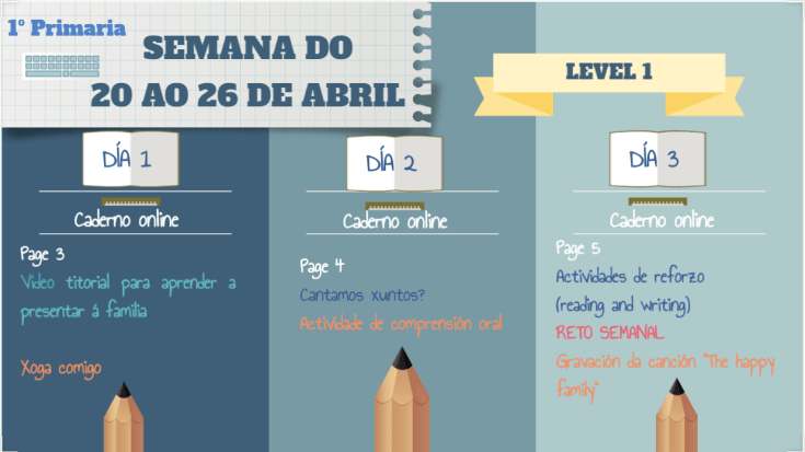 Iniciamos unha nova semana agardando que todos estedes ben. Lede con atención o plan da semana. As actividades van pautadas para facilitar que vos organicedes mellor pero se alguén quere distribuir o traballo doutro xeito non hai problema ningún. Vós sodes os que tendes que adaptar os tempos de traballo ás ciscunstancias da casa (dispoñibilidade de equipo informático, axuda dos vosos pais, outras actividades,…)