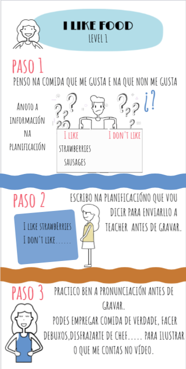 Esta semana iniciamos un novo tema no que imos aprender nomes de alimentos e a expresar os nosos gustos. Espero que as actividades que preparei sexan do voso agrado e que o pasemos moi ben ao longo das vindeiras semanas. Preparado? Here we go!!!!!