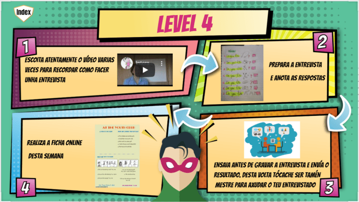 O reto desta semana consiste en facer unha entrevista a alguén da túa familia. Para iso, vas ter que ser reporteiro e mestre á vez. Primeiro imos revisar(non vos riades moito que esto de ser youtuber non é o meu) cómo preguntar sobre gustos. Escoitade con atención as miñas explicacións.