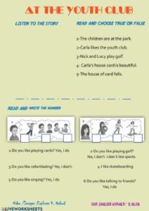 Nesta ficha tendes o vídeo da historia At the youth club do Class Book. Ollade o vídeo ás veces que necesitedes e completades as actividades.