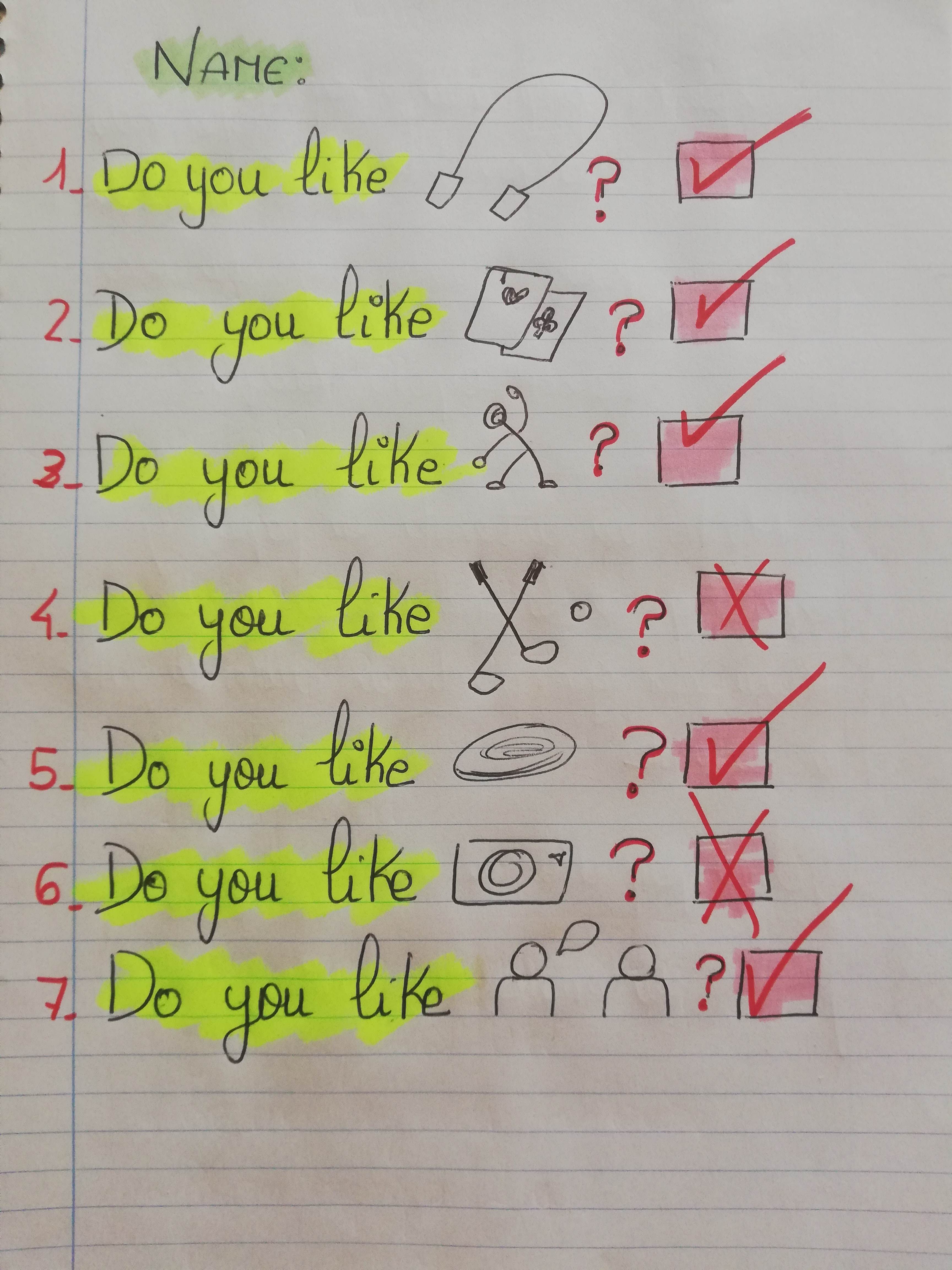 Cando remates, mira a entrevista que fixeches e escribe na libreta que actividades lle gusta facer ao teu entrevistado.