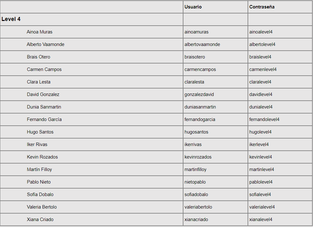 Cada un tendes o voso propio caderno ao que podees acceder coas contraseñas que hai no seguinte cadro.