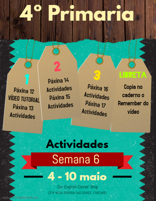 Hoxe tocar unhas actividades de repaso nas páxina 14 e 15 do caderno. A miña recomendación é que revisedes as horas co vídeo antes de facer as actividades e sempre co REMEMBER da libreta diante. Recordade revisar antes de enviar a ficha.