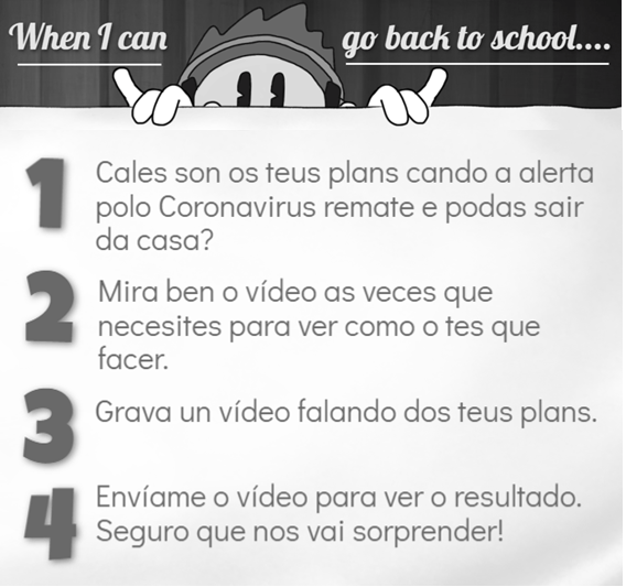 Como estades rapazada? Como vos foi a semana? Antes de explicarvos que o que tendes que facer, un pequeno recordatorio: podedes realizar as actividades que teñades pendentes da semana pasada sen problema.