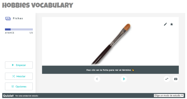 Imos a practicar o vocabulario da unidade 1 “Focus on Free Time”. Aquí tendes un xogo de fichas para repasar e pasalo ben. Cal é a puntuación da túa proba?Mándame un whastapp para sabelo. Copiade o novo vocabulario na libreta.