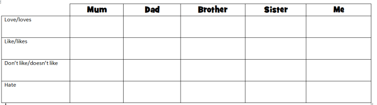 Esta semana imos averiguar os hobbies das vosas familias para facer unha pequena redacción. Antes de escribila planificade toda a información antes de darlle forma seguindo este modelo.