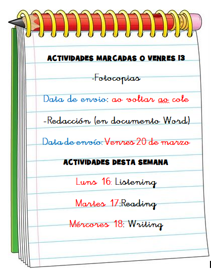 Para esta semana ademáis da redacción que vos mandei, teredes que facer e enviar estas fichas: